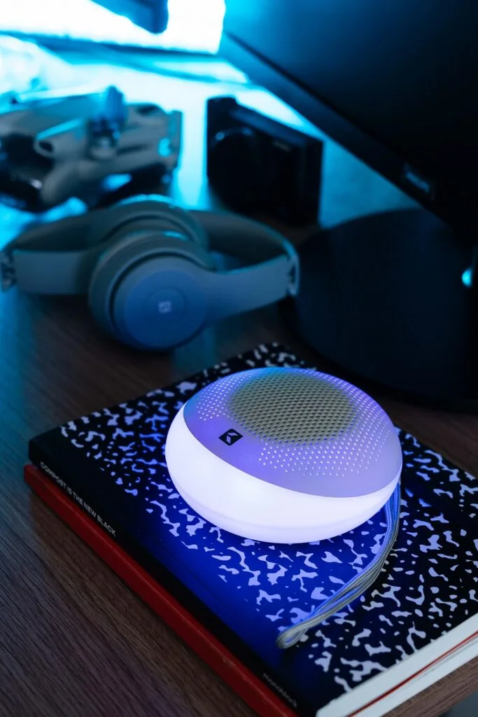 Compacto, moderno y siempre listo. Un parlante pensado para acompañarte en cada momento del día.